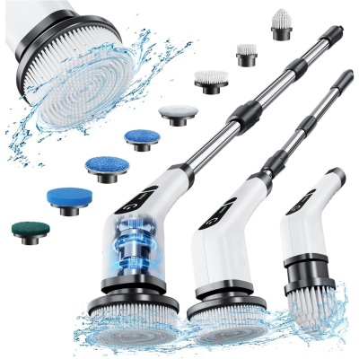 Electric Spin Scrubber, Cordless Cleaning Brush with 8 Replaceable Brush Heads, Tub and Floor Tile 360 Power Scrubber Dual Speed with Adjustable & Detachable Handle for Bathroom Kitchen Car